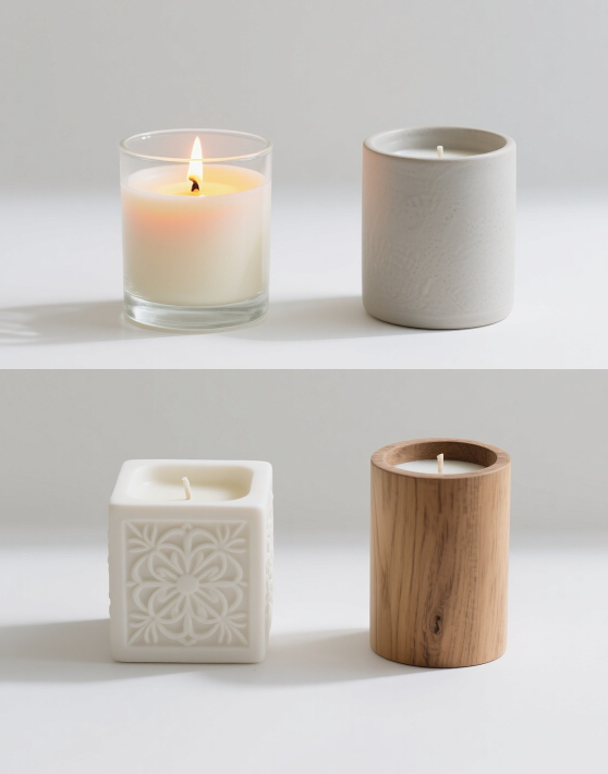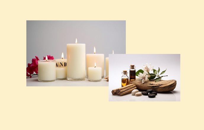 Scented Candles: Handcrafted and perfectly blended with natural essential oils to release delightful fragrances.