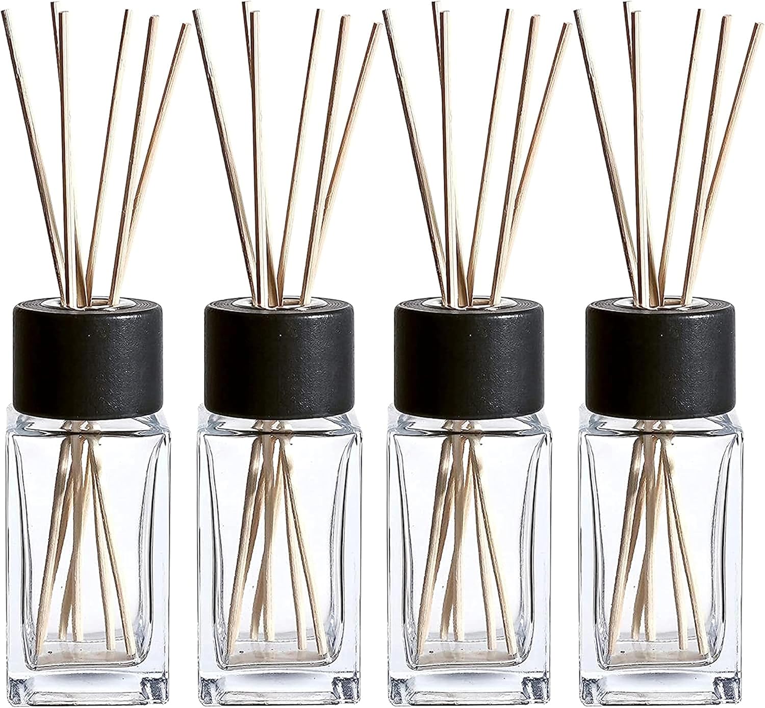 Natural Diffuser Reeds Bottles Sticks | Clear Glass Home Décor for Kitchen and Living Room | Black Wood Caps | Décorative Fragrance Set with Long Lasting Aroma – Set of 4